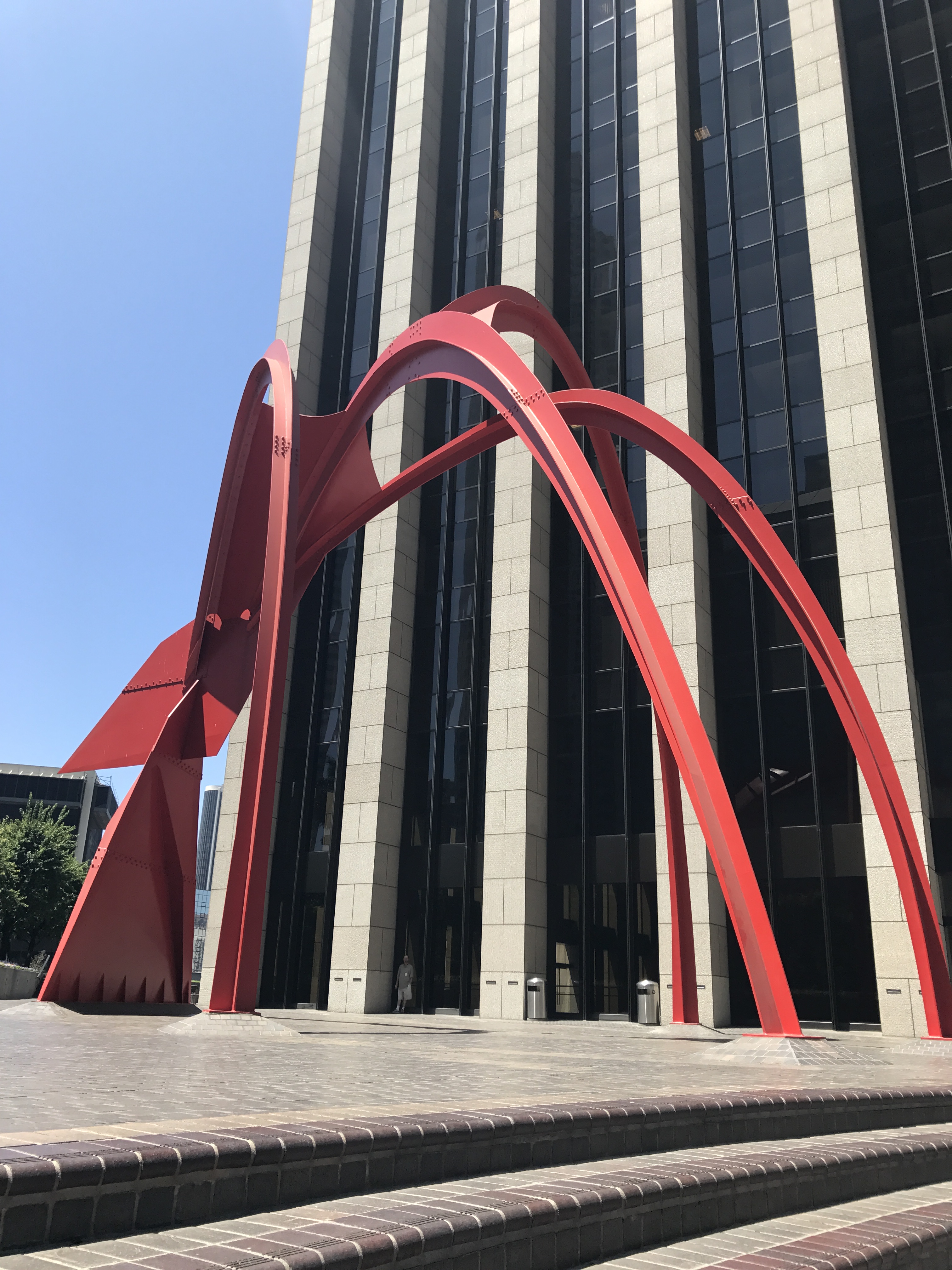 By that point, the sun was both high and hot. So we decided to get inside by visiting the Museum of Contemporary Art (the line at the Broad was still insane, while the MoCA line was almost nonexistent). We spent about an hour walking through the permanent collection of paintings and sculptures. Virginia’s not that much of a modern art fan, especially the abstracts of the mid-20th century, so we didn’t dawdle. The presentation was well curated and we found much to admire.