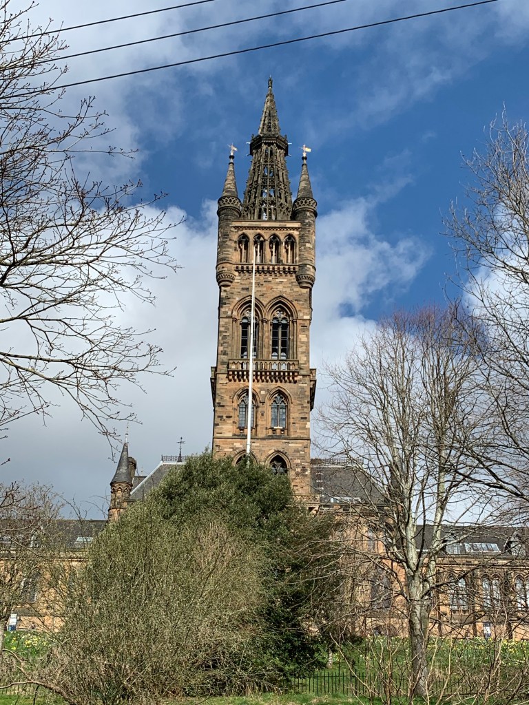 After disembarking, we drove to Tarbert and had lunch at a restaurant called Starfish. Virginia had found it somehow, and it turned out this was their first open day of the season. After dining on prawns, a scallop Scotch egg, and monkfish (with a fennel-potato gratin for me) we drove on to Glasgow,