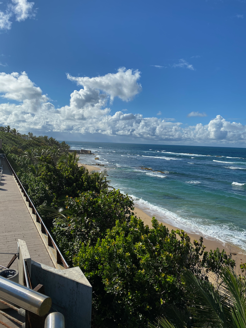 We ordered a basic breakfast – a pastry basket with a pot of coffee – in the room, followed by some much-needed exercise to stand up and move around a bit. We decided to not linger longer and instead make our final hotel change of the trip, this time to the St. Regis on the northeast shore, about 30 minutes outside San Juan.